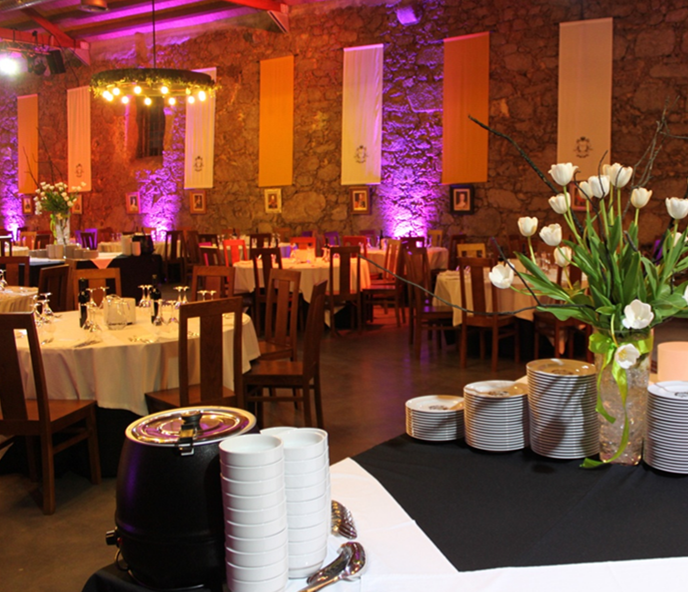 Um amplo recinto de granito secular com uma lotação de restauração de 500 lugares e uma capacidade máxima para outros eventos de 1.000 lugares (congressos, etc.). O granito das paredes fica para contar connosco a sua história, mas os 1.300 m2 foram remodelados para uma harmoniosa conjugação dos três espaços distintos: receção e loja, área de espetáculo e bar e área de restauração.